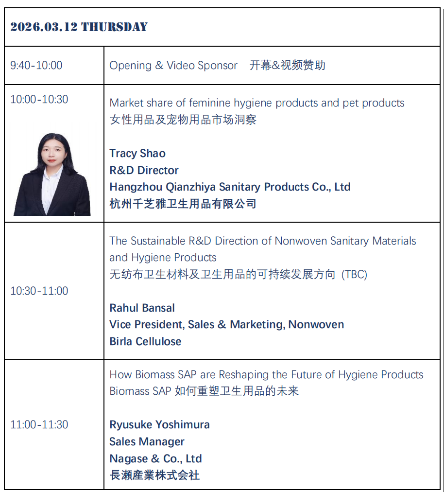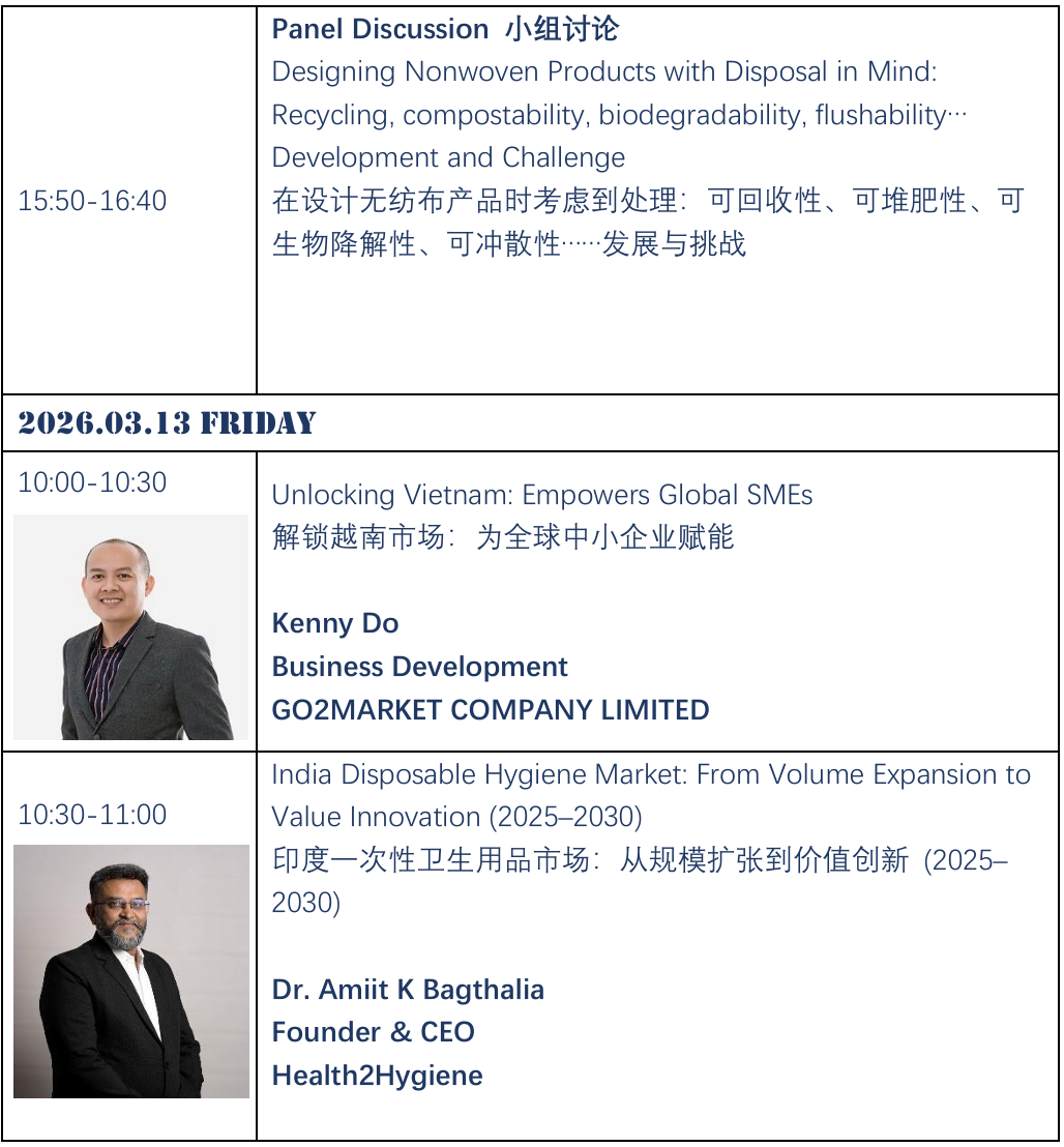 Welcome to the 2026 Asia Nonwoven & Hygiene Development Forum, March 11-13 in SECC (Saigon Exhibition and Convention Center) Hochiminh City,Vietnam. The froum will feature nearly 300+ decision makers from the disposable hygiene products supply chain!